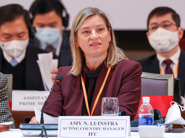 Bà Amy Luinstra, Quyền Giám đốc Quốc gia cấp cao của IFC nhấn mạnh những kết quả rất tích cực của Việt Nam trong năm 2021 khi dịch bệnh diễn biến phức tạp. Ảnh VGP/Nhật Bắc