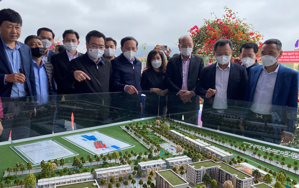 Bộ trưởng Bộ Xây dựng Nguyễn Thanh Nghị và lãnh đạo tỉnh Quảng Ninh tham quan mô hình xây dựng nhà ở công nhân tại Khu công nghiệp Đông Mai - Ảnh: Đ.T.